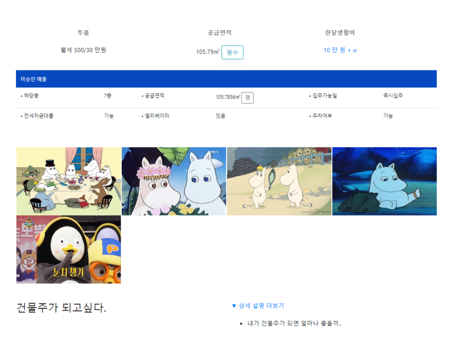 - ๊ธฐ๋ณธ์ ๋ณด, ๋งค๋ฌผ์ฌ์ง, ์ต์ ์ฌํญ๋ฑ์ ๋ณผ ์ ์๋ค.