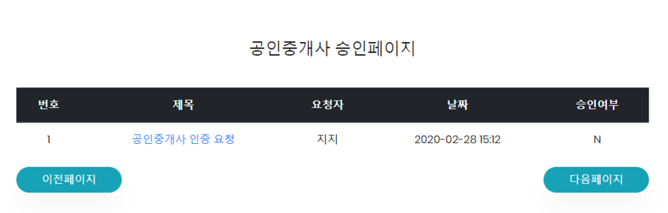 - ํ์ด์ง ๊ด๋ฆฌ์๋ง ๊ณต์ธ์ค๊ฐ์ฌ ์น์ธํ์ด์ง๋ฅผ ๋ณผ ์ ์๋ค.