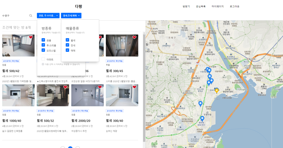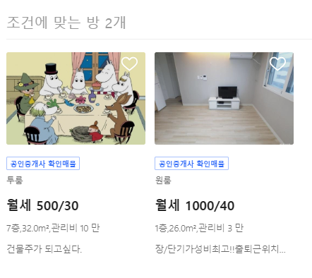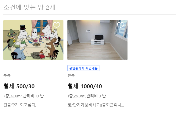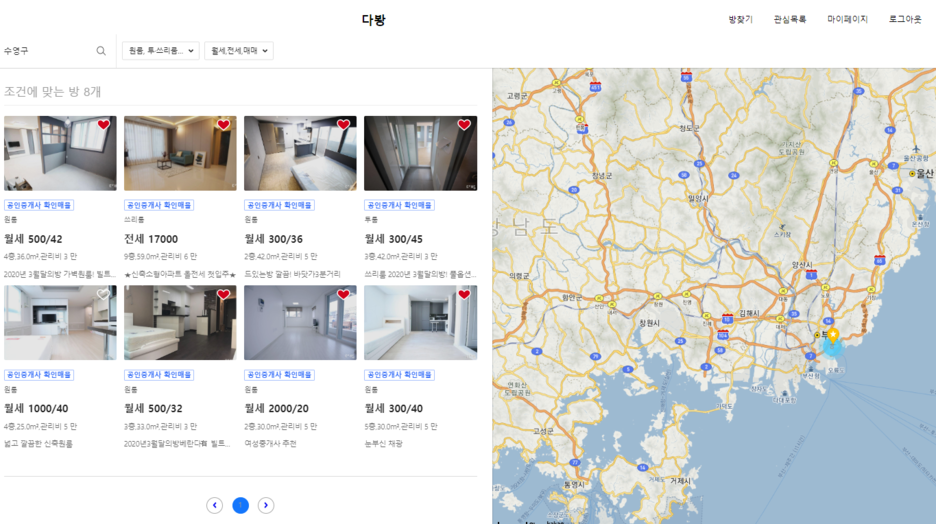 - ๊ฒ์๊ธฐ๋ฅ์ ์ด์ฉํด์ ๊ฒ์ํ ์ง์ญ์ ๋ํ ๋ฐฉ(๋งค๋ฌผ) ์ ๋ณด๋ฅผ ์ฐพ์ ์ ์๋ค.