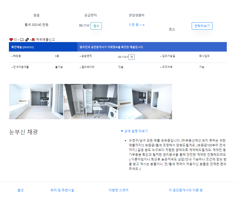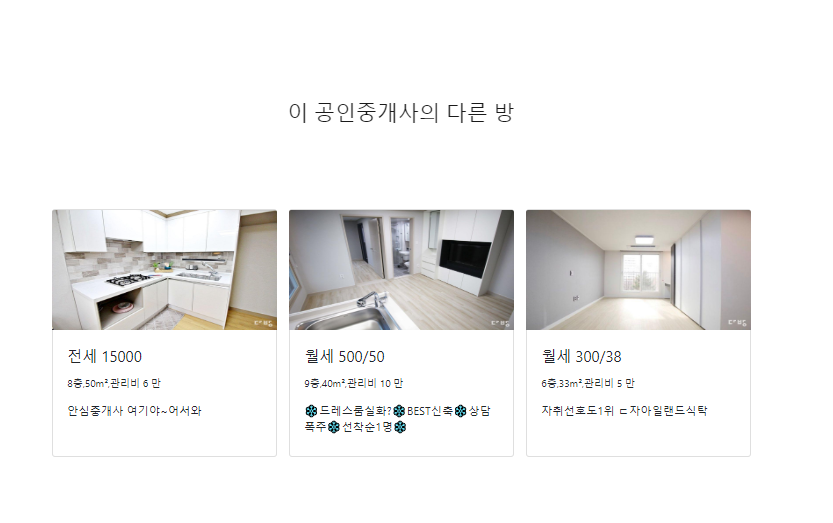 - ํด๋น ๋งค๋ฌผ์ ์น์ธํ ๊ณต์ธ์ค๊ฐ์ฌ๊ฐ ์น์ธํ ๋ค๋ฅธ ๋งค๋ฌผ์ ์ต๋ 3๊ฐ๊น์ง ๋ณผ ์ ์๋ค.