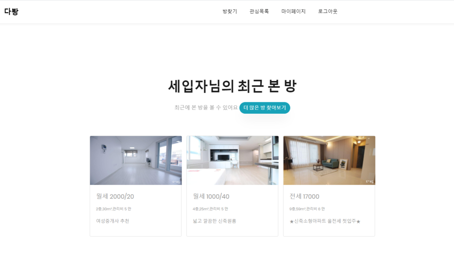 ๋ค๋ฐฉ์ ํ์ด์ง๋ ์ธ์ ์, ๋ฐฉ์ฃผ์ธ, ๊ณต์ธ์ค๊ฐ์ฌ ์ด ์ ์ ์ฃผ์ฒด๋ณ๋ก ๊ฐ์ ๊ฒฝ๋ก ๋ฑ์ ํ์ด์ง๊ฐ ๋ฌ๋๋๋ฐ