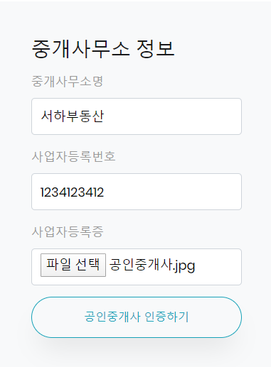- ๊ณต์ธ์ค๊ฐ์ฌ ์ธ์ฆํ๊ธฐ ๋ฒํผ์ ํด๋ฆญํ์ฌ ์ธ์ฆ์ ๋ณด๋ฅผ ์ ๋ ฅ ํ ์ ์๋ค.